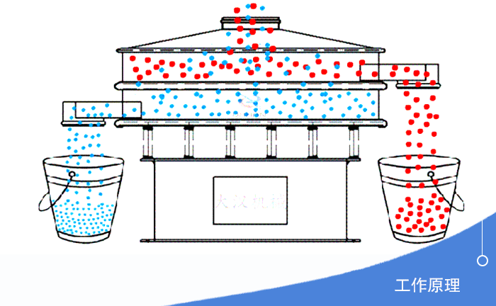 不銹鋼旋振篩分機(jī)采用直立式電機(jī)作激振源,當(dāng)篩機(jī)啟動后,電機(jī)上、下兩端安裝的偏心重錘,將電機(jī)的旋轉(zhuǎn)運(yùn)動轉(zhuǎn)變?yōu)樗健⒋怪?、傾斜的三次元運(yùn)動,再把這個運(yùn)動傳遞給篩面。在此過程中,小于篩面孔徑的物料通過篩孔落到下層,成為篩下物,大于篩面孔徑的物料經(jīng)連續(xù)跳躍運(yùn)動后從排料口排出,用戶通過調(diào)節(jié)上、下兩端重錘的相位角,可以改變物料在篩面上的運(yùn)動軌跡,從而設(shè)計實(shí)現(xiàn)對物料的篩分。