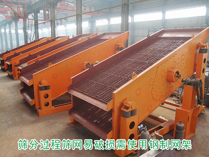 使用礦用篩分機(jī)進(jìn)行篩分時(shí),因其篩分的物料會有一定的的重量,使用普通網(wǎng)架容易造成破損的問題,所以需要使用鋼質(zhì)網(wǎng)架來代替木質(zhì)網(wǎng)架,增加網(wǎng)架和篩網(wǎng)的承受能力,更換為鋼制網(wǎng)架的大型礦用振動(dòng)篩不僅換網(wǎng)比較方便,更可以延長篩網(wǎng)、篩機(jī)的使用壽命。