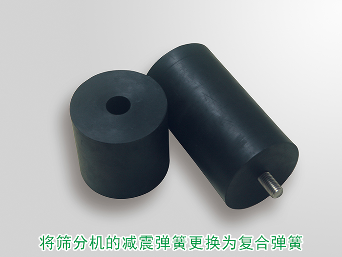 可將篩分機的減震彈簧更換為符合彈簧,復(fù)合彈簧具有高強度的阻尼,可有效限制共振區(qū)區(qū)域減緩共振時間降低整個篩分設(shè)備振動頻率的功效。